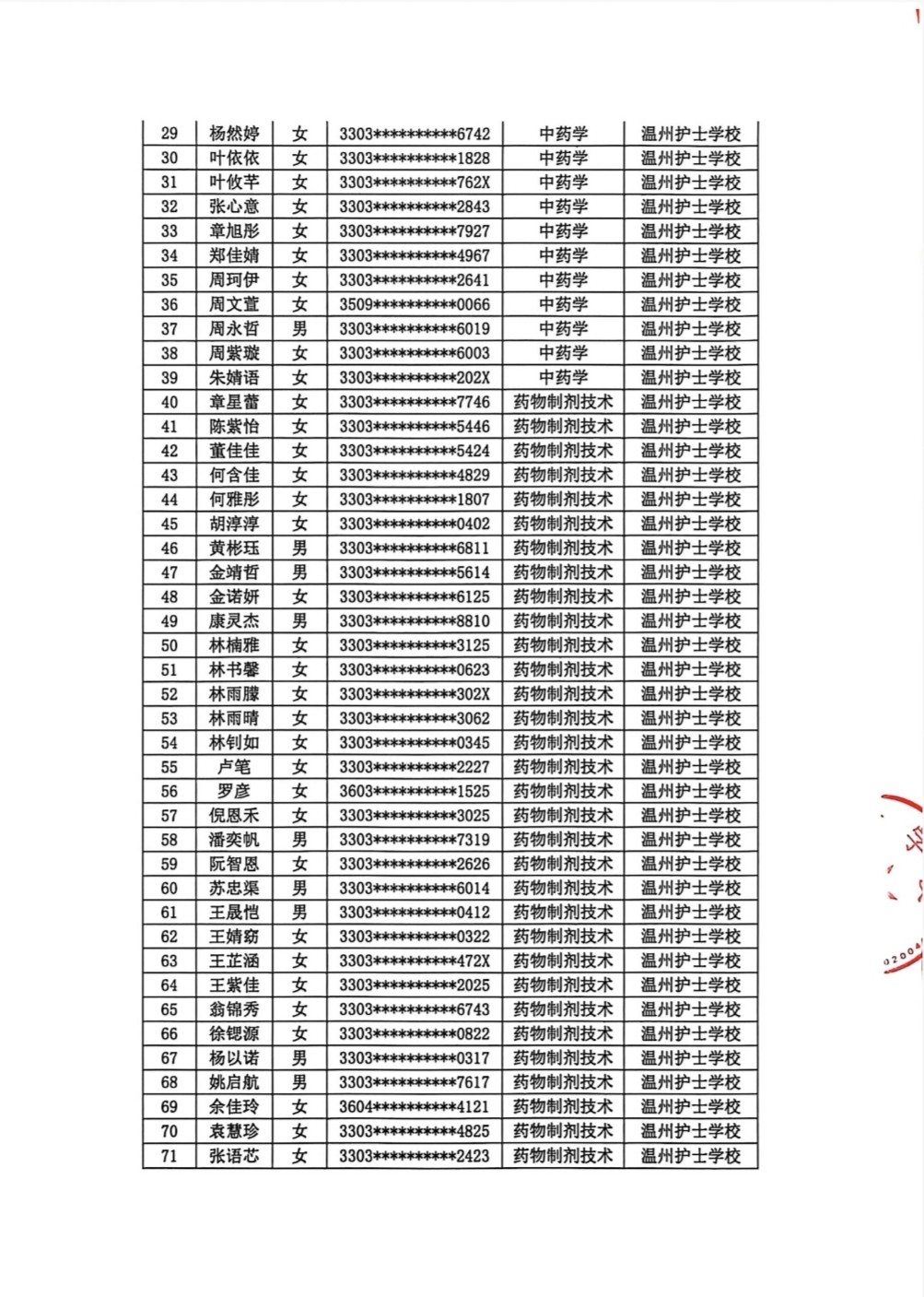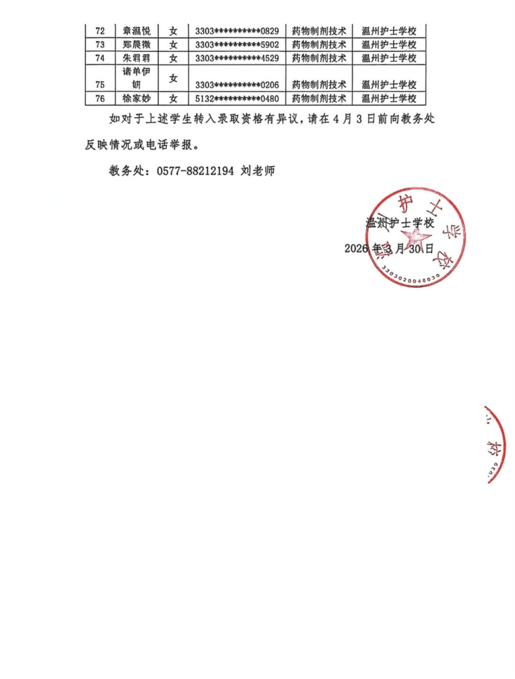 温州护士学校2年以上休眠饭卡公示清单